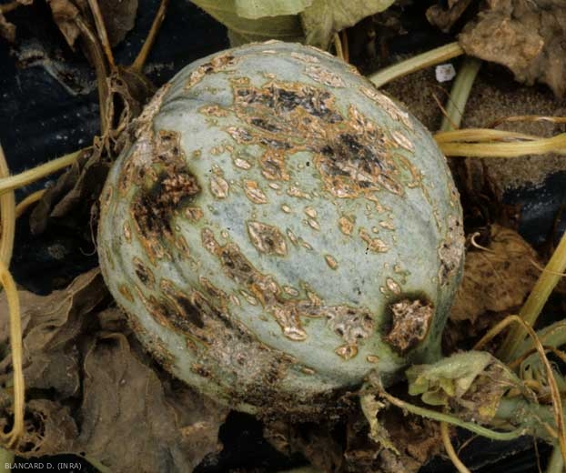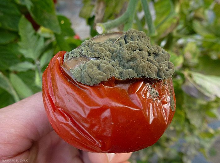Causes envisageables : des champignons Ascomyctes appartenant en particulier aux genres Penicillium, Cladosporium, voire Cladosporium et Passolora fulva. Les 3 premiers genres contiennent des espèces saprophytes opportunistes très courantes qui affectent les légumes que très ponctuellement. P. fulva est un redoutable pathogène foliaire de la tomate.