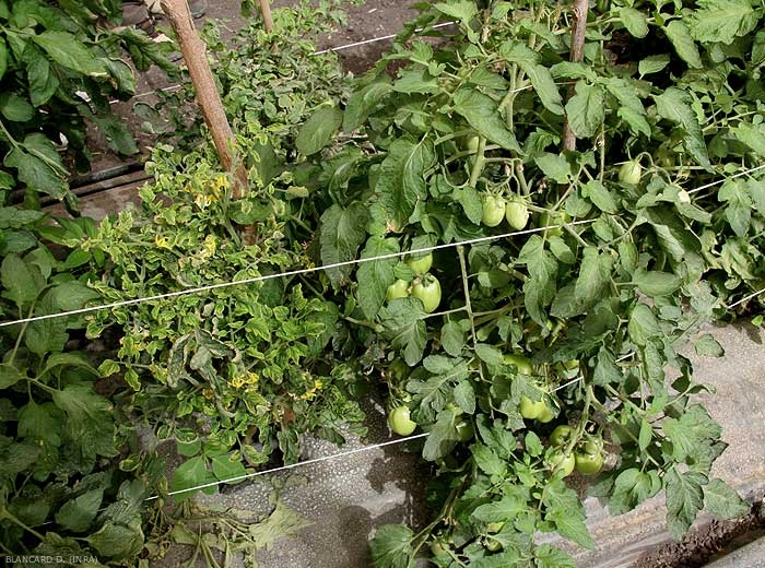 Le diagnosticien est parfois confronté à ce symptôme lorsqu'il entre dans une culture légumière afin d'y effectuer un diagnostic, et surtout dès qu'il commence à évaluer la vigueur des plantes, et l'homogénéité de la végétation ; les plantes de taille réduite contrastent de façon plus ou moins criarde avec celles dont le développement s'est déroulé normalement.