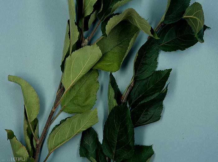 Au printemps, dès le débourrement, les acariens rouges provoquent des nécroses à la périphérie des feuilles, qui jaunissent, se crispent et, en cas d’attaques graves, sèchent et tombent.