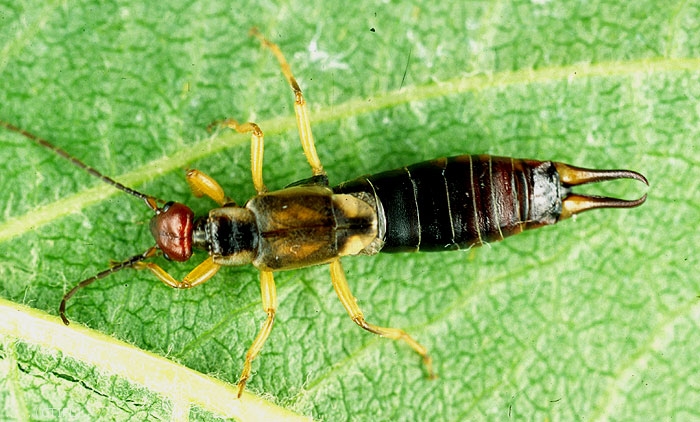 Les adultes possèdent des forceps caractéristiques qui permettent de reconnaître les mâles des femelles (figure 1). Les élytres sont courts et protègent les ailes repliées au repos en éventail. Les ailes ne semblent servir qu’exceptionnellement. Les larves ressemblent aux adultes.