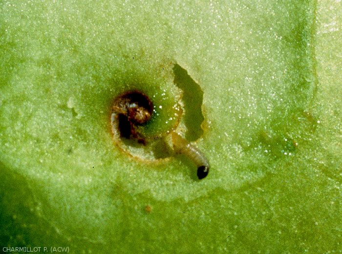 La larve néonate commence par creuser une galerie circulaire plus volumineuse que celle du carpocapse (figure 1).