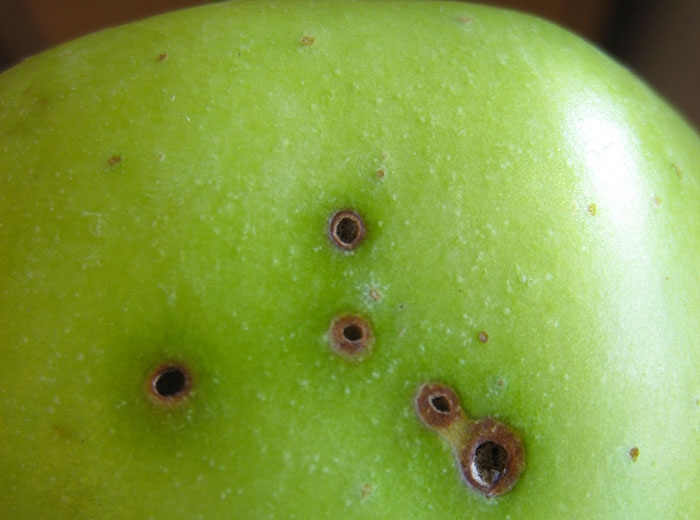 Les déprédations se résument à des criblures pour la génération d’automne. Les fruits sont alors dépréciés, pourrissent ou chutent.