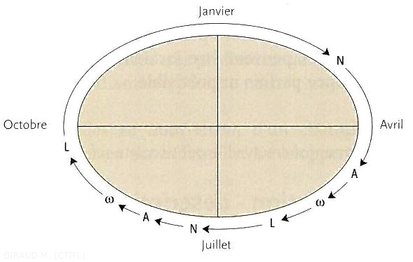 L’hibernation a lieu elle aussi dans les galeries. Les adultes apparaissent en mai-juin.