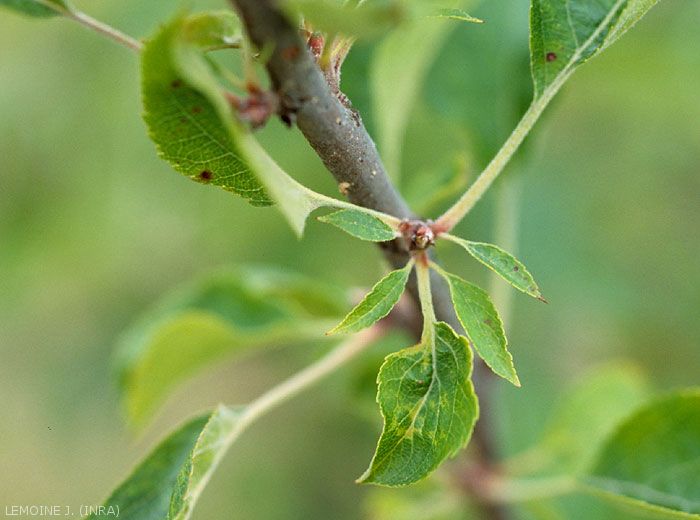 Par ailleurs, les arbres contaminés par le phytoplasme sont plus sensibles à l’oïdium causé par Podosphaera leucotricha.