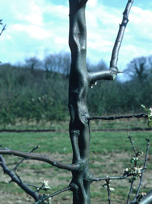 Elles sont moins apparentes sur poirier. Elles rendent plus fragiles les axes, et surtout les implantations de branches.