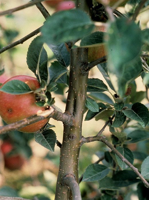 La majorité des cultivars de pommier sont tolérants et n’extériorisent aucun symptôme caractéristique.