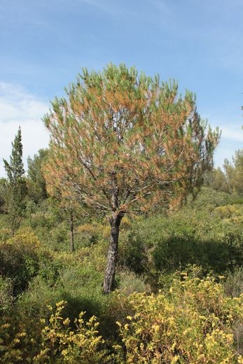 Le rougissement des pins pignons et d'Alep