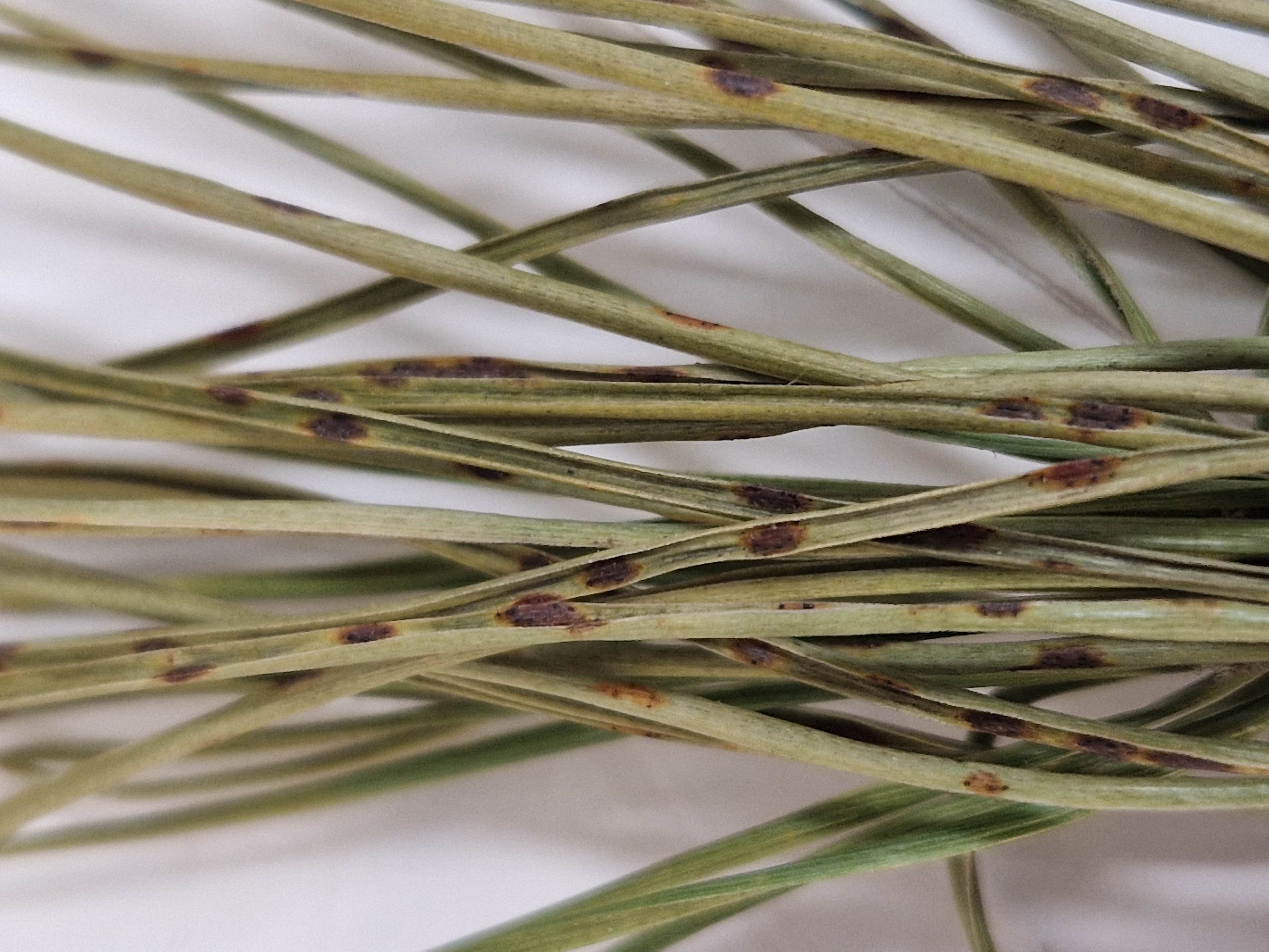 - en situation d'endémie, sur le pin d'Alep, les aiguilles de 2 ans tombent au printemps, au départ de la végétation. La présence des aiguilles dans le houppier est donc limitée à deux années au cours de la saison. Ce modèle, avec des exceptions, est plus long de un an chez Pinus pinea, où les aiguilles de 3 ans tombent au printemps. Dans ces deux cas, on peut considérer que le champignon «accompagne» la sénescence naturelle des aiguilles des pins (dont la chute normale a lieu à la fin de l'été) ;