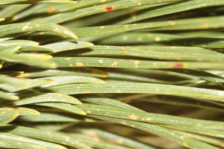 - En ce qui concerne les conifères, les symptômes d’ozone s’expriment sur les aiguilles de deux manières, par des petites taches jaune à vert clair, des marbrures à contour diffus, en particulier sur la face supérieure et à la pointe des aiguilles ou par une décoloration spécifique des aiguilles sur les faces exposées à la lumière.