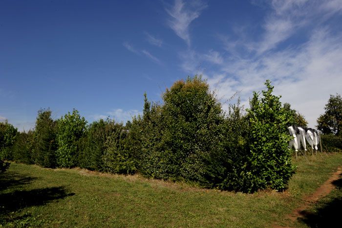 Les haies, dont les fonctions dans l’espace agricole sont multiples, sont souvent implantées en tant que brise-vent en bordure de verger (cf. Figures 1, 2, 3 et 4). Elles constituent également un « réservoir » de plantes, un refuge, un habitat, un site d’hivernation (ex : feuilles persistantes, tiges entrelacées), des ressources (pollen, nectar, baies, proies) pour les auxiliaires (insectes et oiseaux), un filtre, une barrière (ex : contre les Lépidoptères) et/ou un corridor (pour certaines espèces de carabes, oiseaux, mammifères, reptiles…).
