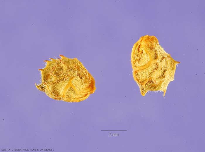 Cette légumineuse fourragère est une plante vivace, à racine pivotante profonde, de 15 à 60 cm de hauteur, à fleurs roses ou rouges disposées en grappes serrées et allongées pollinisées par les bourdons, et à feuilles composées de 10, 11 ou 12 paires de folioles et d'une foliole terminale. Les gousses indéhiscentes ornées de crêtes épineuses et contenant une seule graine sont semées au printemps.