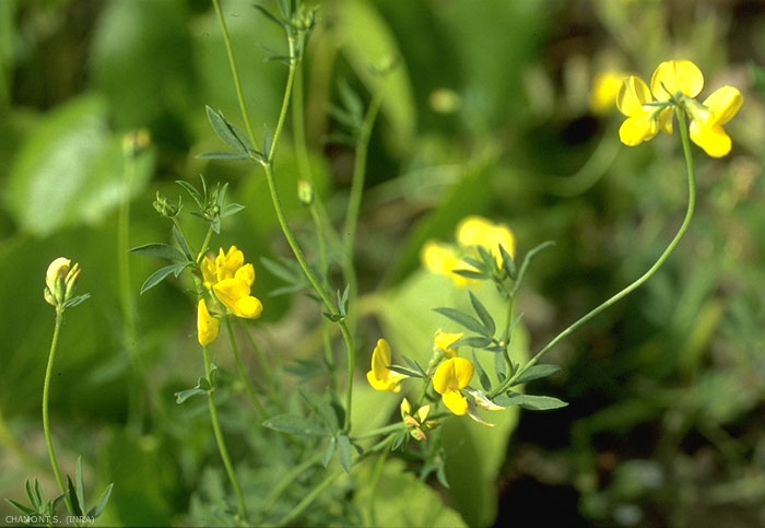 C'est une légumineuse fourragère vivace, de 15 à 20 cm de hauteur, plus ou moins rampante et à pollinisation entomophile, que l'on rencontre dans les prairies naturelles et artificielles dans le monde entier. Les fleurs sont jaunes avec des zones plus rouges et disposées en verticille longuement pédonculé. La feuille pédonculée est à 3 ou 5 folioles.