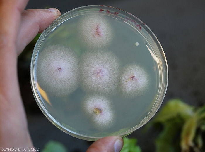 - Chlamydospores à paroi épaisse se développant à partir du mycélium ou des conidies (non visibles).