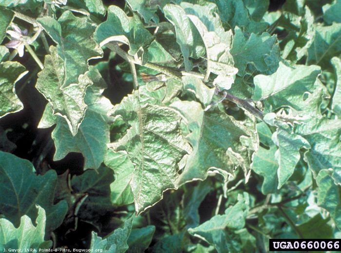 A la surface des feuilles, les piqûres nutritionnelles le long des nervures donnent un aspect argenté à la feuille.