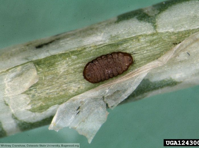 - larve : au départ transparente et longue de 0,5 mm puis jaunâtre et longue de 2,5-3,5 mm