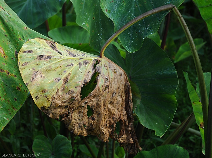 • Nécrose et dessèchement des feuilles en cas de fortes attaques (figure 6)