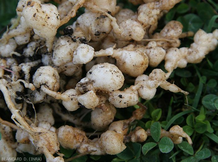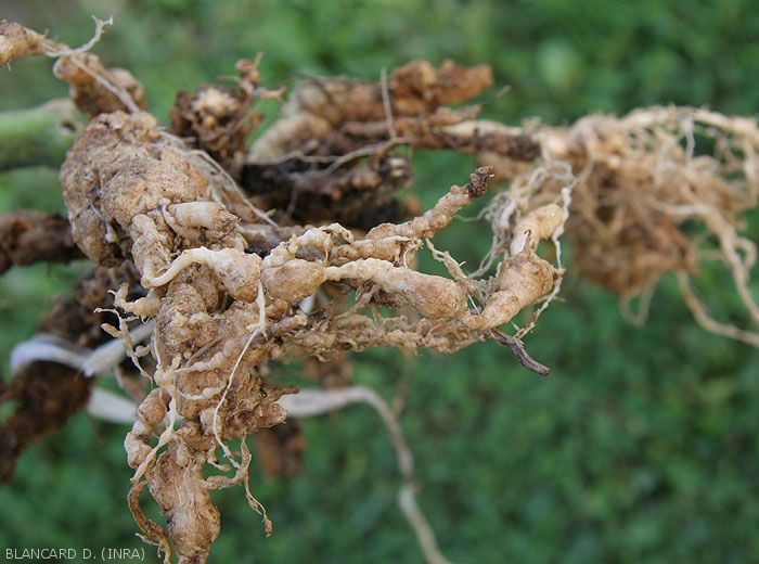 - Confusions possibles : symptômes racinaires très spécifiques, se méfier sur légumineuses à ne pas confondre les galles avec des nodosités.