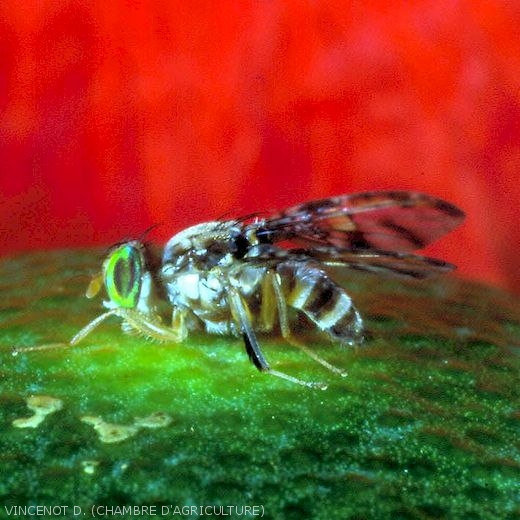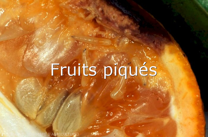 - Collecter et détruire les fruits piqués et qui sont tombés au sol. Chaque fruit peut générer des centaines de mouches d’une nouvelle génération.