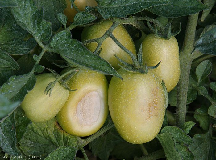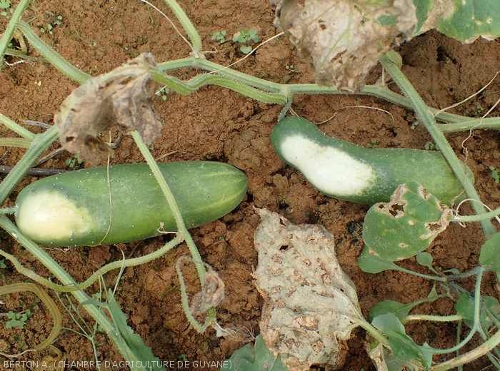- des fruits altérés sont surtout observés en plein champ, les feuilles brûlées plus sous abris ;