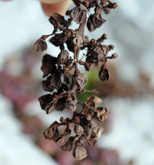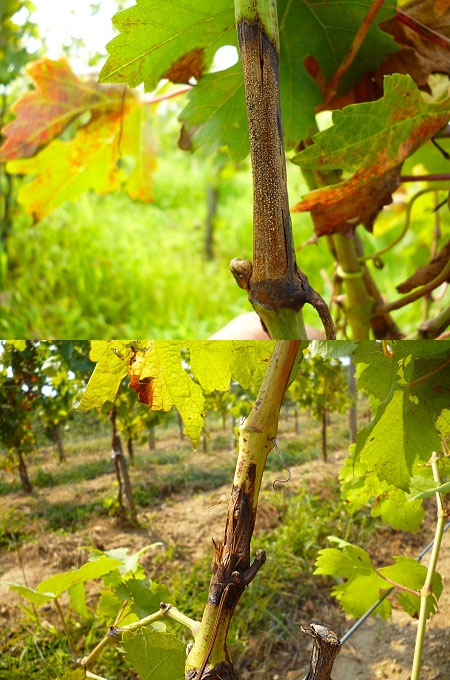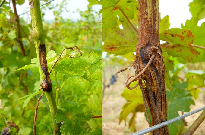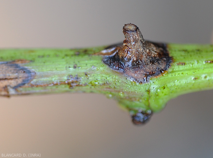 Pilidiella diplodiella affecte essentiellement les grappes et les rameaux de la vigne, rarement les feuilles.
