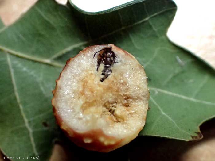 Les galles de Cynips sont souvent parasitées par des hyménoptères chalcidiens de la famille des Torymidae (photo).