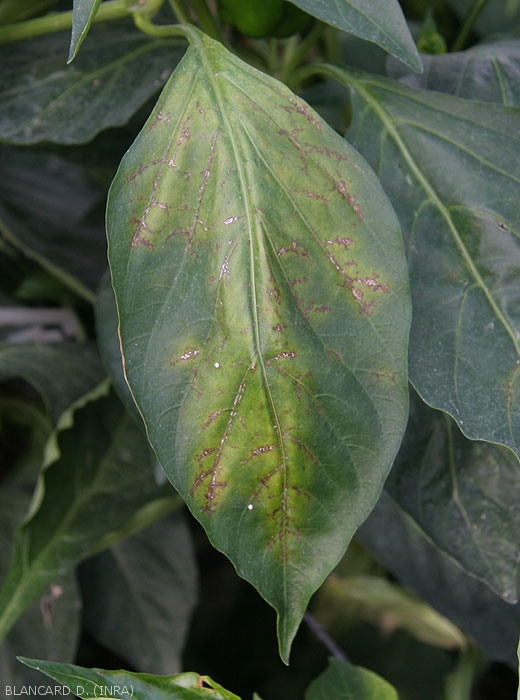 Marbrure, voire mosaïque verte à jaune (figures 1-poivron ; .