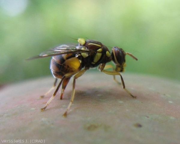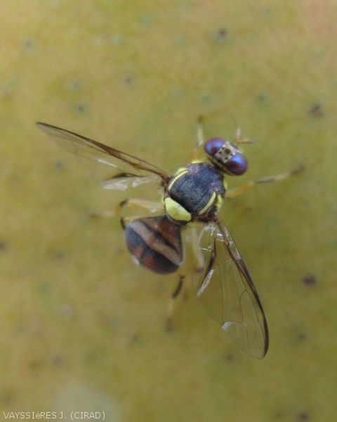 Mouche des fruits faisant partie de la famille des Tephritidae originaire d’Asie du Sud-Est dont les larves se nourrissent de la pulpe des fruits, occasionnant d’importants dégâts. Cette mouche invasive dans la zone du sud-ouest de l'océan Indien (Comores, Mayotte, Maurice, Madagascar, La Réunion), présente une large gamme d’hôtes et une fécondité très élevées. A La Réunion ce ravageur arrivé en 2017 a été observé dans près de 40 espèces de fruits et légumes.