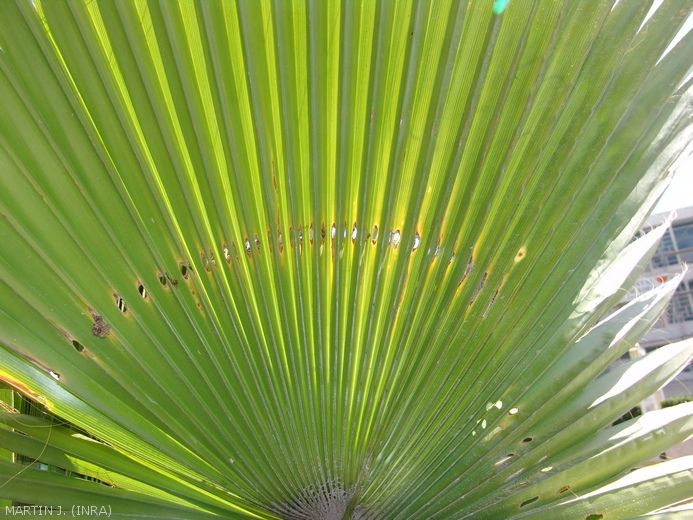 - Perforation des palmes notamment chez les espèces au feuillage palmé