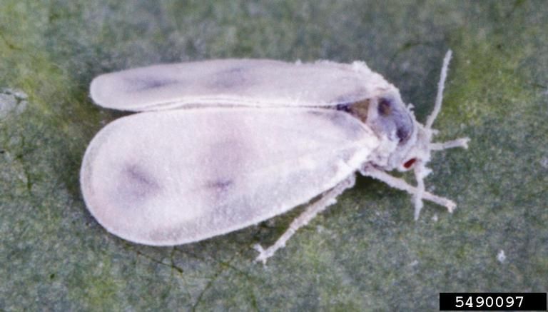 Les adultes mesurent environ 1,5mm de long et ont sur chaque aile blanche deux taches grises (permettant de les identifier facilement). Elles se nourrissent du phloème et du liquide intra cellulaire des feuilles et sécrètent du miellat qui va entrainer l’apparition de fumagine.