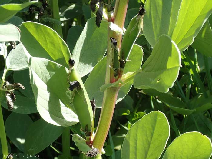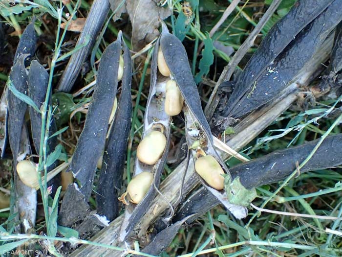 Elles sont pollinisées par les bourdons à langue longue ou par ceux à langue courte qui percent la base de la corolle. Les Eucera et Anthophora autres hyménoptès Apidae sont aussi de bons pollinisateurs de cette culture. Les graines de couleur plus ou moins claires sont contenues dans une gousse noire sclérifiée (photo).