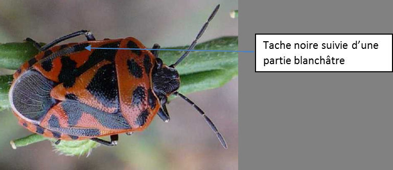 Chez Eurydema ornata, on distingue une tache noire suivie d’une partie blanchâtre.