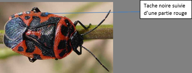 Chez Eurydema ventralis, on distingue une petite tache noire suivie d’une partie rouge.