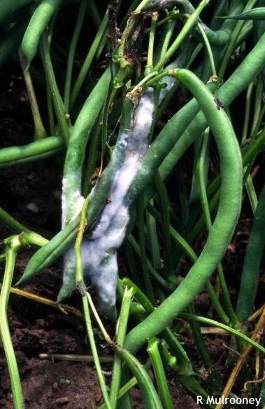 Sur les gousses, on peut également observer des lésions de formes irrégulières sur lesquelles le champignon fructifie rapidement.