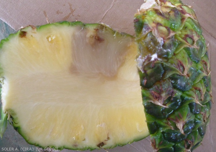 Cette maladie est causée par Ceratocystis paradoxa (forme sexuée). C'est une maladie post-récolte, elle se développe lors du stockage au froid du fruit (condensation du champignon sur la peau des fruits à cause d'une interruption de la chaîne du froid). Son incidence dépend : du climat lors de la récolte, du nombre de chocs qu'a subis le fruit, ainsi que de la quantité de C. paradoxa présente dans le fruit.