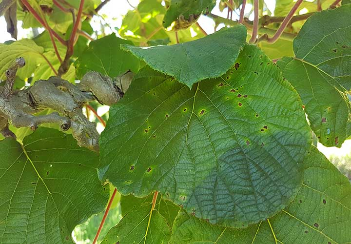 Cette bactérie, présente en France depuis 2010, est un complexe d’espèces très diverses. Son impact sur Actinidia n’est absolument pas négligeable et nécessite une vigilance particulière. Jusqu’en 2019, il était même inclus sur la liste A2 d’alerte OEPP (Organisation européenne et méditerranéenne pour la protection des plantes) du fait des dommages causés sur les vergers.