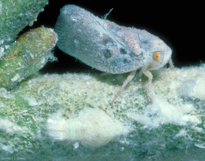 La cicadelle blanche est un insecte piqueur suceur très polyphage. Adultes et larves s’alimentent à partir de la sève de la plante hôte ce qui a des conséquences :