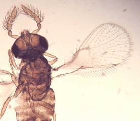 Ces insectes sont minuscules (0,25-0,30 mm) avec des ailes à nervation très réduite et sont en forme de raquette avec des soies sur les bordures (figure). Ce ne sont pas des bons voiliers et ils sont surtout transportés par les courants d'air.