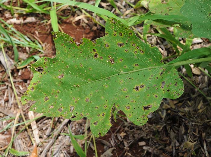 • Les tissus dégradés sèchent, se fendent et finissent par tomber ; le limbe est ainsi partiellement criblé (figure 3 et 4).