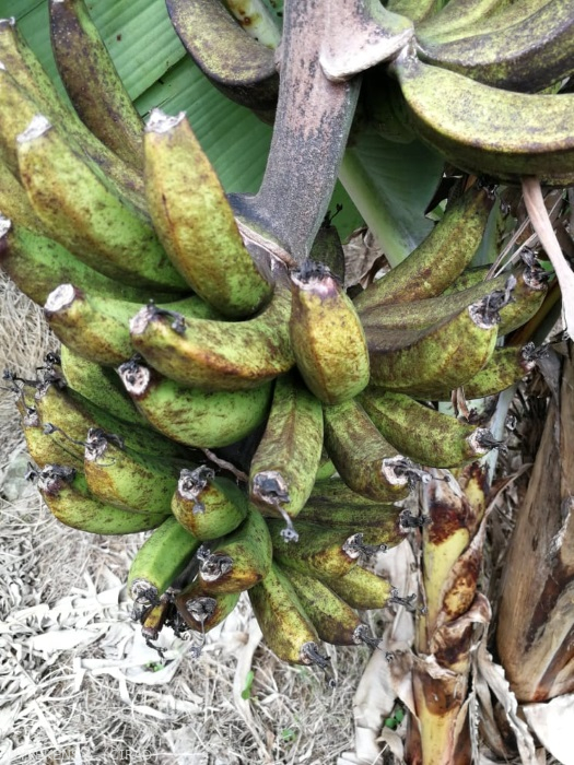 Deux autres espèces, Phyllosticta maculata et Phyllosticta musarum responsables de symptômes identiques, ont été décrites sur bananier dans d’autres pays.
