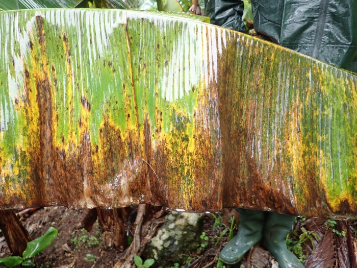- Pratiquer un effeuillage sectoriel et couper des feuilles symptomatiques très marquées, de manière à réduire l’inoculum (se référer aux préconisations pour lutter contre les cercosporioses du bananier et veiller à laisser au moins 5 feuilles par bananier porteur d’un régime).