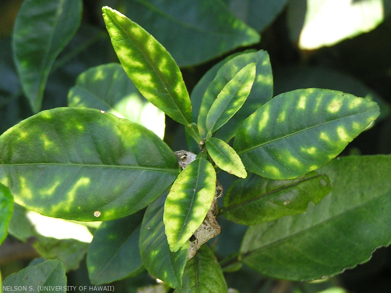 Feuilles : pâles avec nervures vertes, blanchiment