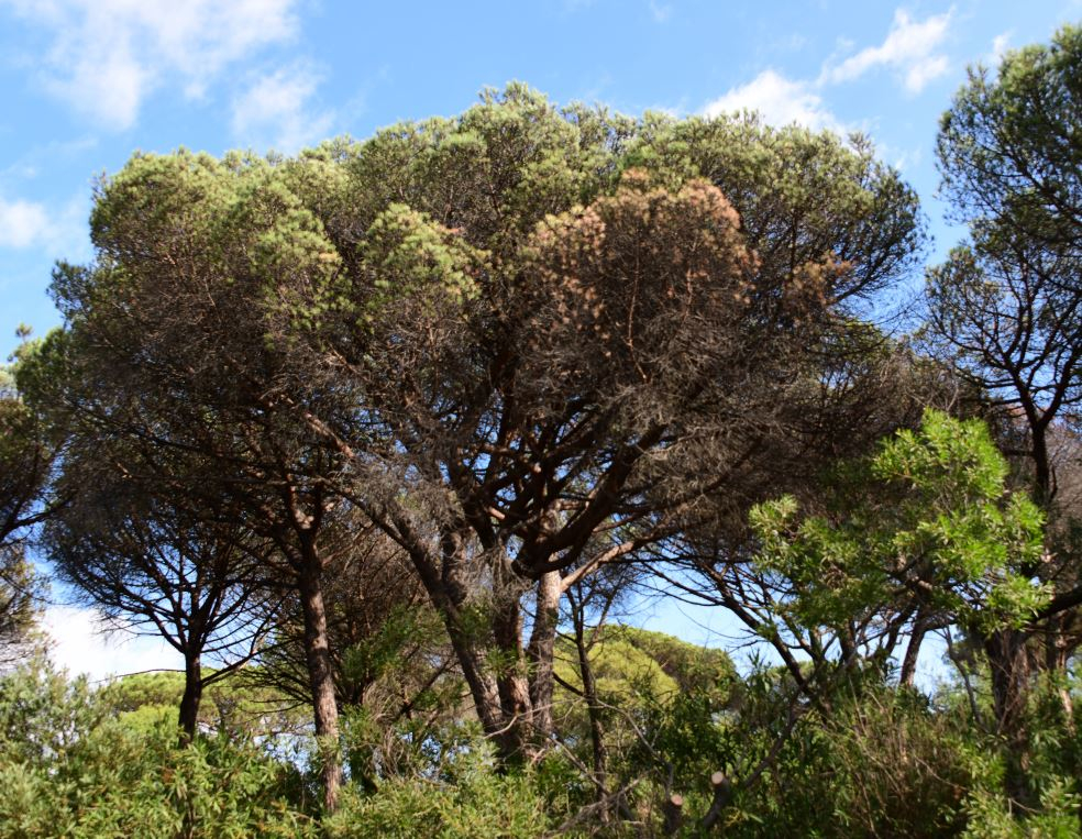 Dépérissement abiotiques, Thyriopsis halepensis sur pin pignon.