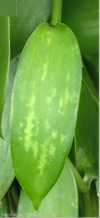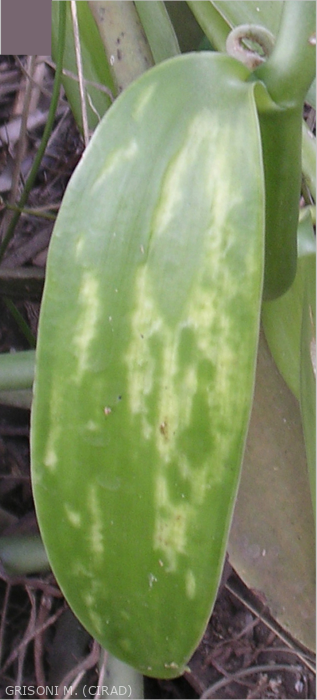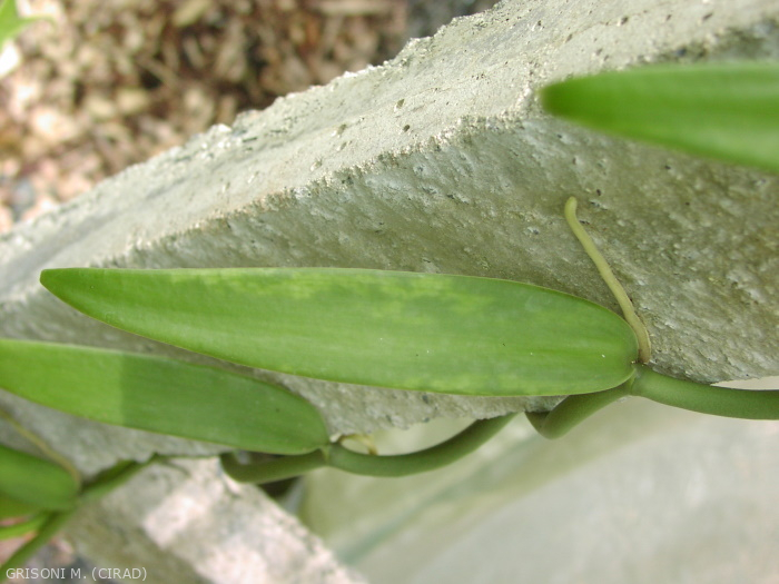 Les symptômes de potyvirus sont en général assez spectaculaires (mosaïques et déformation du limbe des jeunes feuilles), mais s’estompent avec le vieillissement de la feuille. Ils n’ont pas d’impact connu sur le rendement ou la qualité de la récolte sauf en cas de co-infection avec le Cymbdium mosaic virus qui conduit au dépérissement rapide des lianes de vanille.