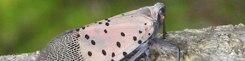 Le Fulgore tacheté est originaire de Chine. Il fuit introduit accidentellement en Corée et au Japon à plusieurs reprises avant de s'y développer durablement. Sa présence a été signalée en aux États-Unis en septembre 2014 dans l’état de la Pennsylvanie, puis ses populations se sont rapidement répandues dans les États adjacents. Le Fulgore tacheté est polyphage : il se nourrit d'une grande diversité de plantes hôtes dont le pommier, la vigne et les arbres du genre Prunus, ainsi que des espèces ornementales et forestières. Les dégâts provoqués par ce ravageur sont causés par des prélèvements de sèves et des infestations importantes de Lycorma delicatula peuvent engendrer la mort des arbres sur lesquels ils s'alimentent.