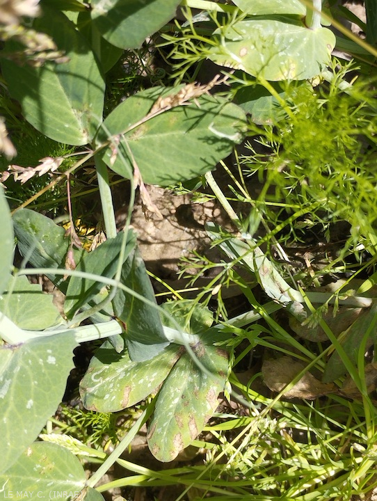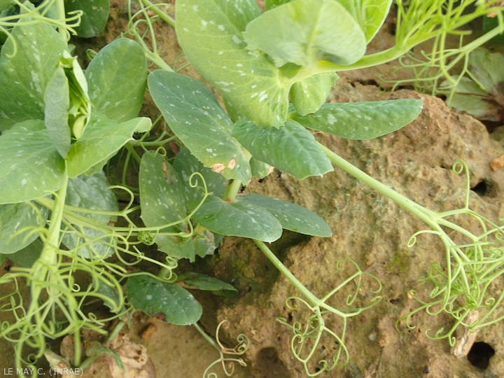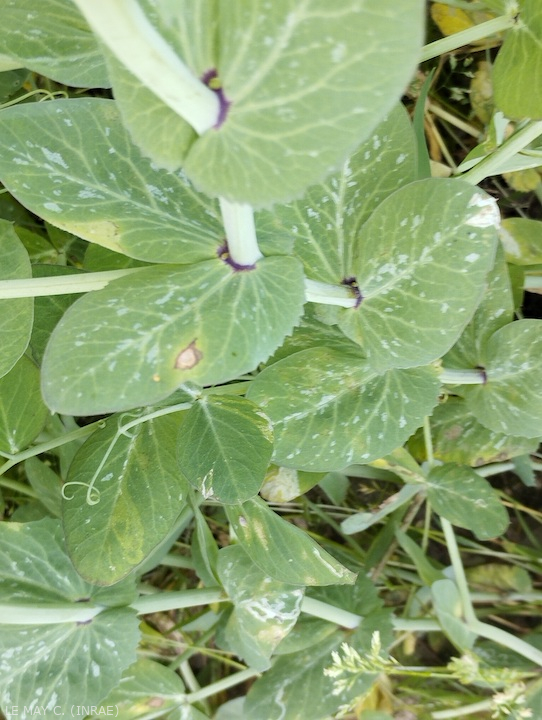 En effet, les symptômes développés par A. pisi correspondent également à des taches circonscrites mais de couleur jaune pâle-blanc (Figures 4 à 9)