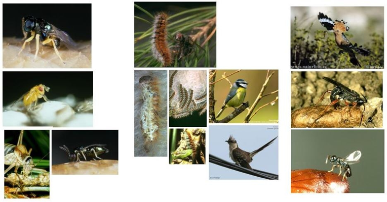 Photos d’ennemis naturels de la processionnaire du pin (© INRAE).