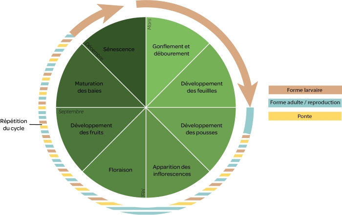 Les dégâts se font généralement de juin à novembre avec une plus forte infestation d’août à novembre.