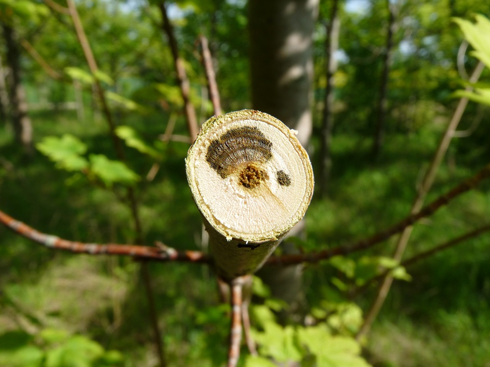 - présence de stries brun-vert dans l'aubier de branche (figure 2)