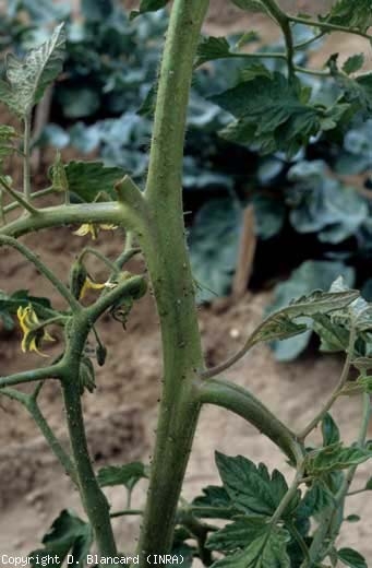 Les piqûres nutritionnelles sont à l'origine des ponctuations chlorotiques et peuvent déformer les jeunes folioles (figures 4 et 5). Une réduction de la croissance des jeunes pousses, voire des plantes, peut être constatée. En plus des colonies de pucerons, on observe bien souvent des mues blanches et la présence de miellat à la surface des organes aériens de la tomate, sur lequel se développe la fumagine (sooty mold). Rappelons que cette dernière peut avoir plusieurs conséquences, notamment une réduction de la photosynthèse et de la respiration foliaire et la souillure de fruits rendus ainsi non commercialisables.