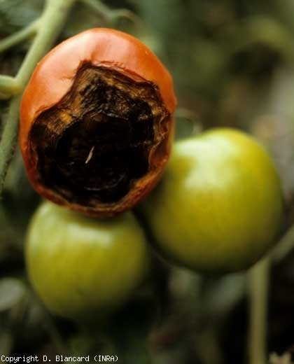 Ce désordre physiologique est couramment observé dans tous les types de culture, notamment dans celles qui sont irriguées à la raie, par submersion, où chez les jardiniers amateurs utilisant le tuyau d'arrosage. Il peut apparaître à tous les stades de développement des fruits, mais il survient surtout lorsque ces derniers ont atteint le tiers ou la moitié de leur taille maximale. Les tomates affectées par la nécrose apicale sont souvent les premières formées, qui mûrissent plus vite. Notons que cette lésion peut être colonisée par divers micro-organismes, envahisseurs secondaires, responsables des pourritures décrites dans ce chapitre (figure 3) (notamment des Alternaria).